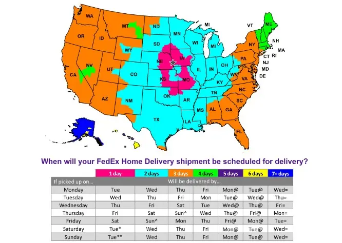 Please allow 2-3 business days for your order to ship. Most orders are shipped Fedex Ground unless an item is too large and must be shipped motor freight. Fedex home delivery operates Tuesday through Saturday. Fedex delivers to business addresses Monday through Friday. There is an additional charge for Saturday delivery on Overnight and 2nd Day packages.