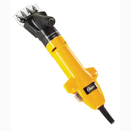 The Shearmaster Clippers feature an improved fan to reduce temperatures. The heads have a 7 to 1 gear reduction for superior torque and performance. This single speed motor runs at 2500 cycles per minute. Equipped with a 3″ wide sheephead.