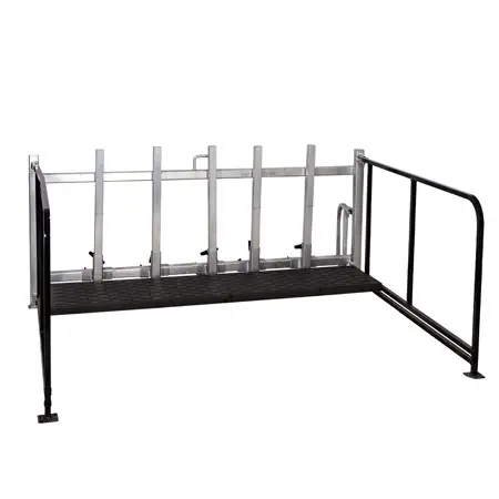 The angled back neck reach allows rooms for working on neck and chest of animal.