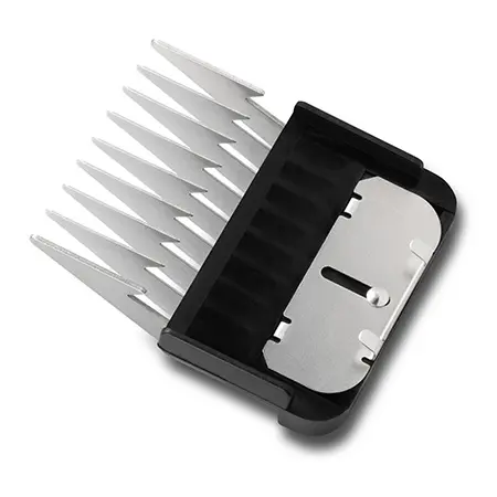 Easily and securely fits to the bottom of #30 or #10, narrow blade set. Insures that hair will be cut to one exact length. Made from hardened stainless steel to easily glide through hair without any drag. 8 different depth sizes: 1/8”, 1/4”, 3/8”, 1/2”, 5/8”, 3/4”, 7/8”, & 1” included in each set.”, 5/8”, 3/4”, 7/8”, & 1” included in each set.
