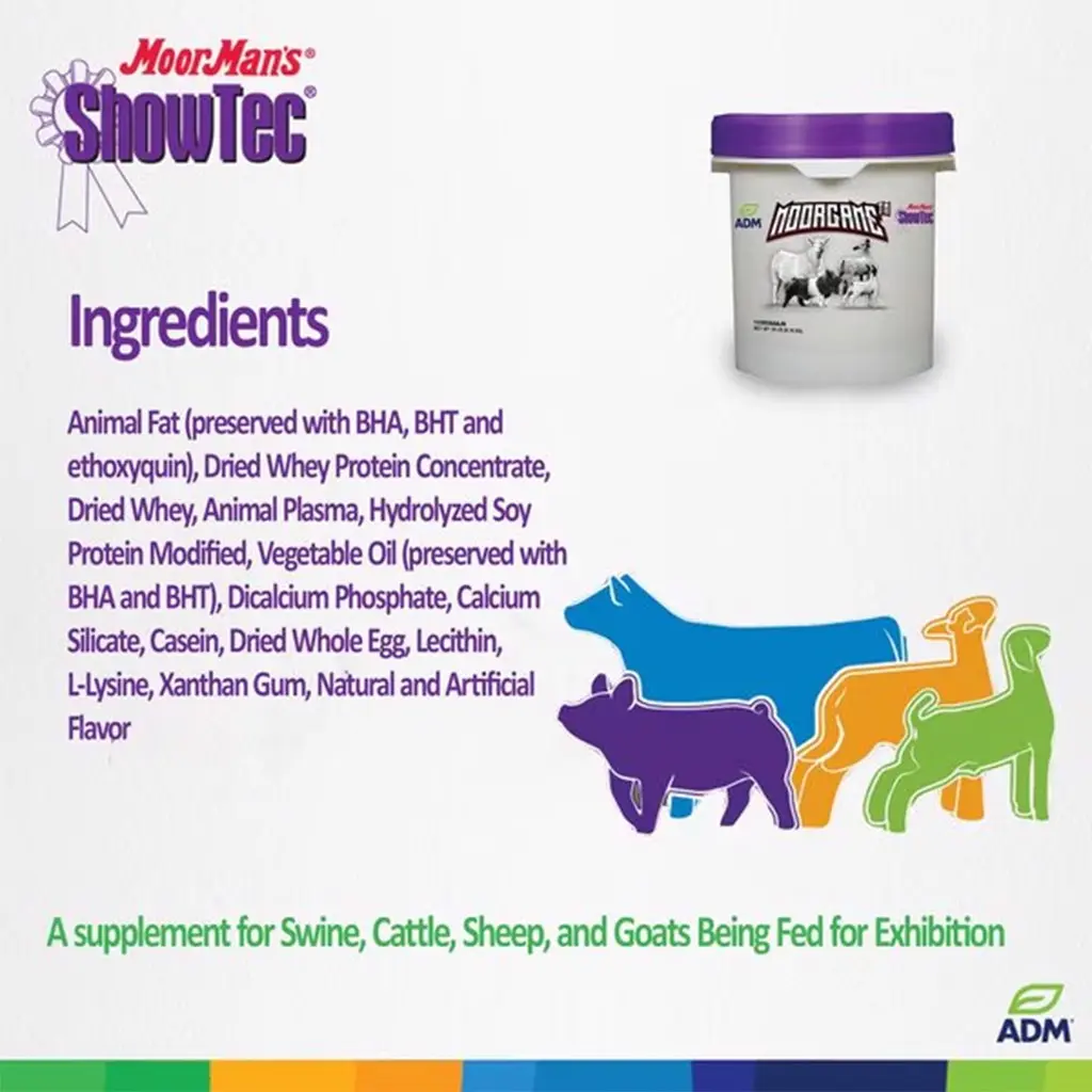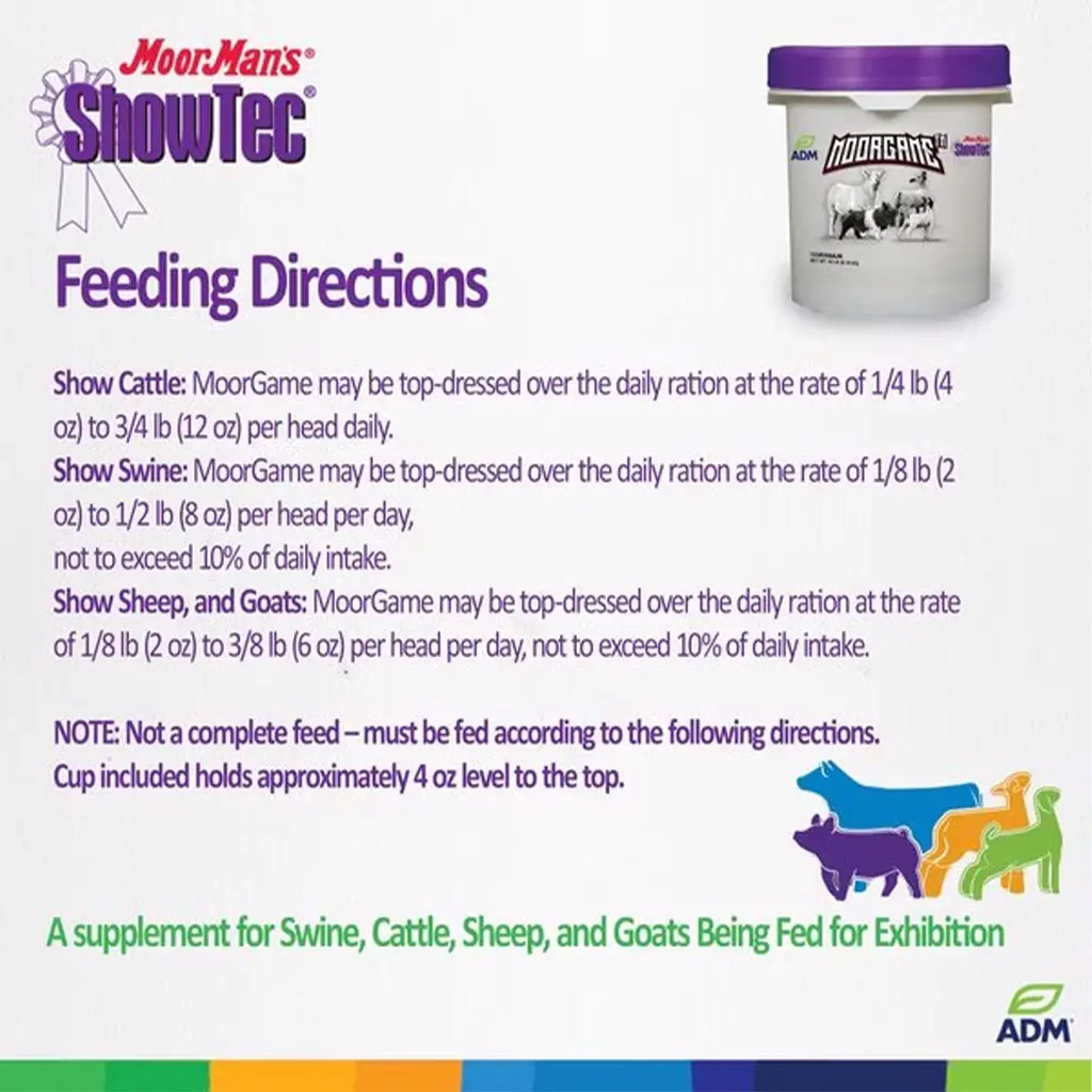 MoorMan’s® ShowTec® MoorGame™ is a powerful top-dress supplement designed to enhance performance and appearance in show pigs, show cattle, show sheep, and show goats. MoorGame supports more back shape, more muscle spread, and more overall flesh, giving your animals the edge in the ring.