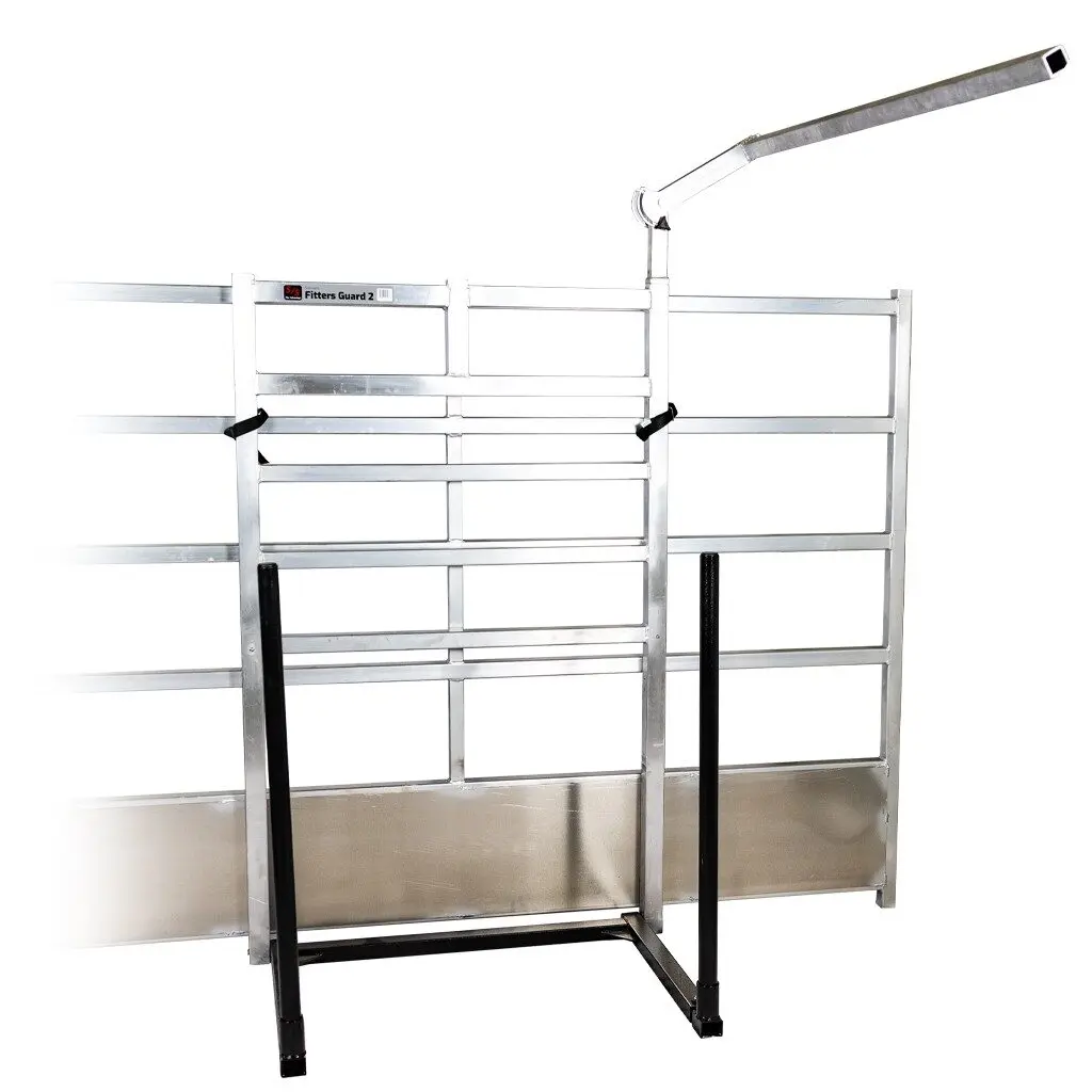 Next generation design of Fitters Guard Light Hangers, keeps your stalls bright with light and free of shadows. This one hanger can rotate up to 120 degrees left of right. Simply pivot and lock your lights into your preferred position. Constructed of 1.5” square lightweight aluminum tubing, this hanger fits into the top of your Fitters Guard, then extends 59.5” out over the top of your animal. It’s not just for Fitters Guards … with the optional Adapter sold below, the hanger will fit into the tops of aluminum front stall panels to provide added stall lighting. Extremely versatile, this one light hanger can accommodate both 4ft and 8ft light bars to meet all your needs. Simply attach your LED light bar (sold separately) for ultimate set up.