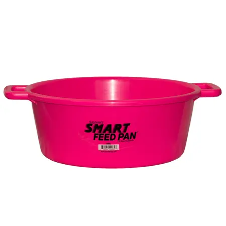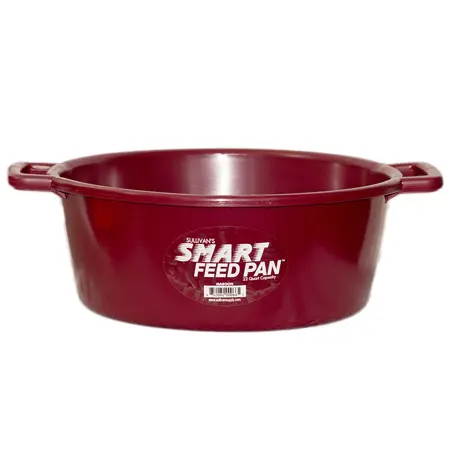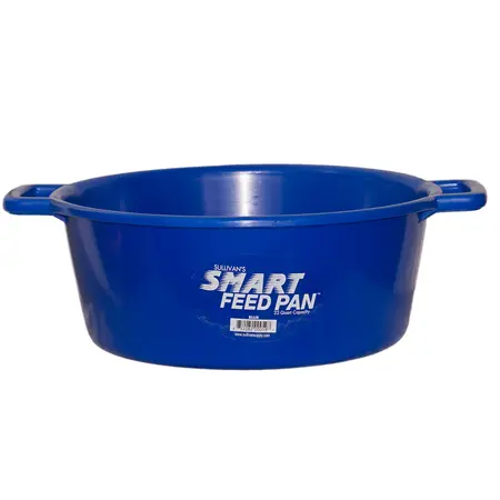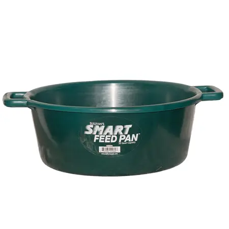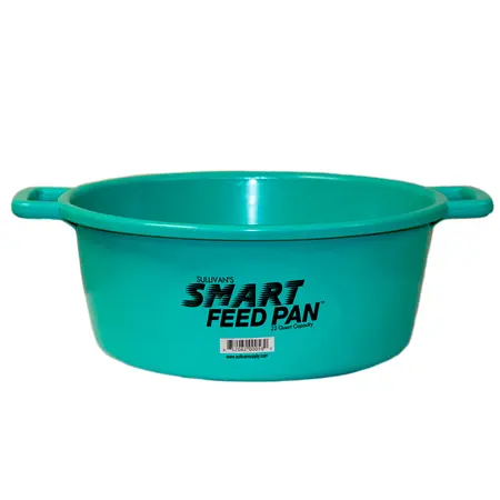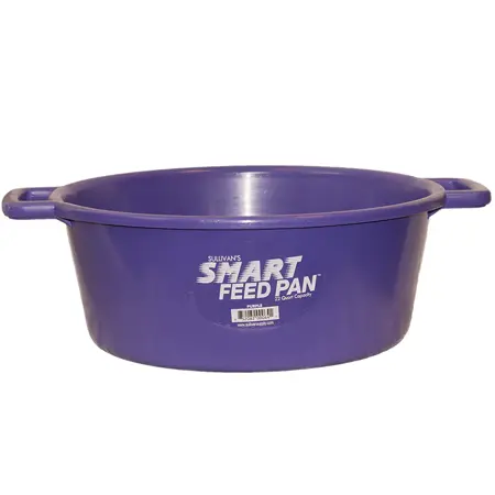 The Perfect Design for Today’s High Fiber Feed Rations. This large, 22 quart capacity feed pan holds one gallon more feed than previous feed pan designs. Large, open handle design provides a comfortable grip for easy carrying. The large diameter at the bottom of this feed pan prevents tipping and spills. Constructed of tough, impact resistant polyethylene. The smooth finish is very easy to clean.